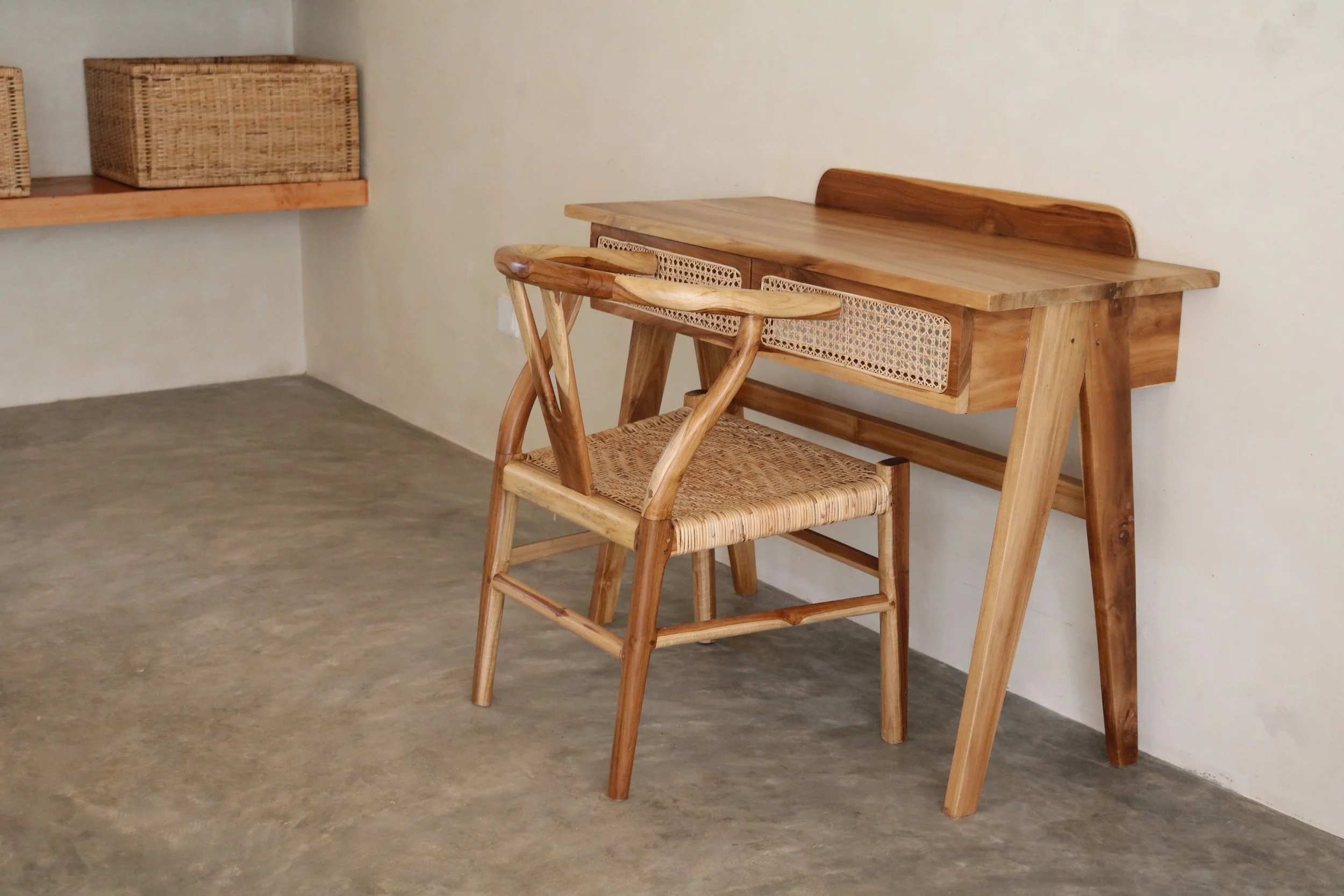 Each cabana features a private ensuite with an outdoor shower, complemented by Swell toiletries, including shower gel, shampoo, and conditioner. The room also includes a dedicated workspace/desk, along with both air conditioning and a fan for optimal comfort. Wardrobe space is provided, along with robes and towels for both pool & shower use.